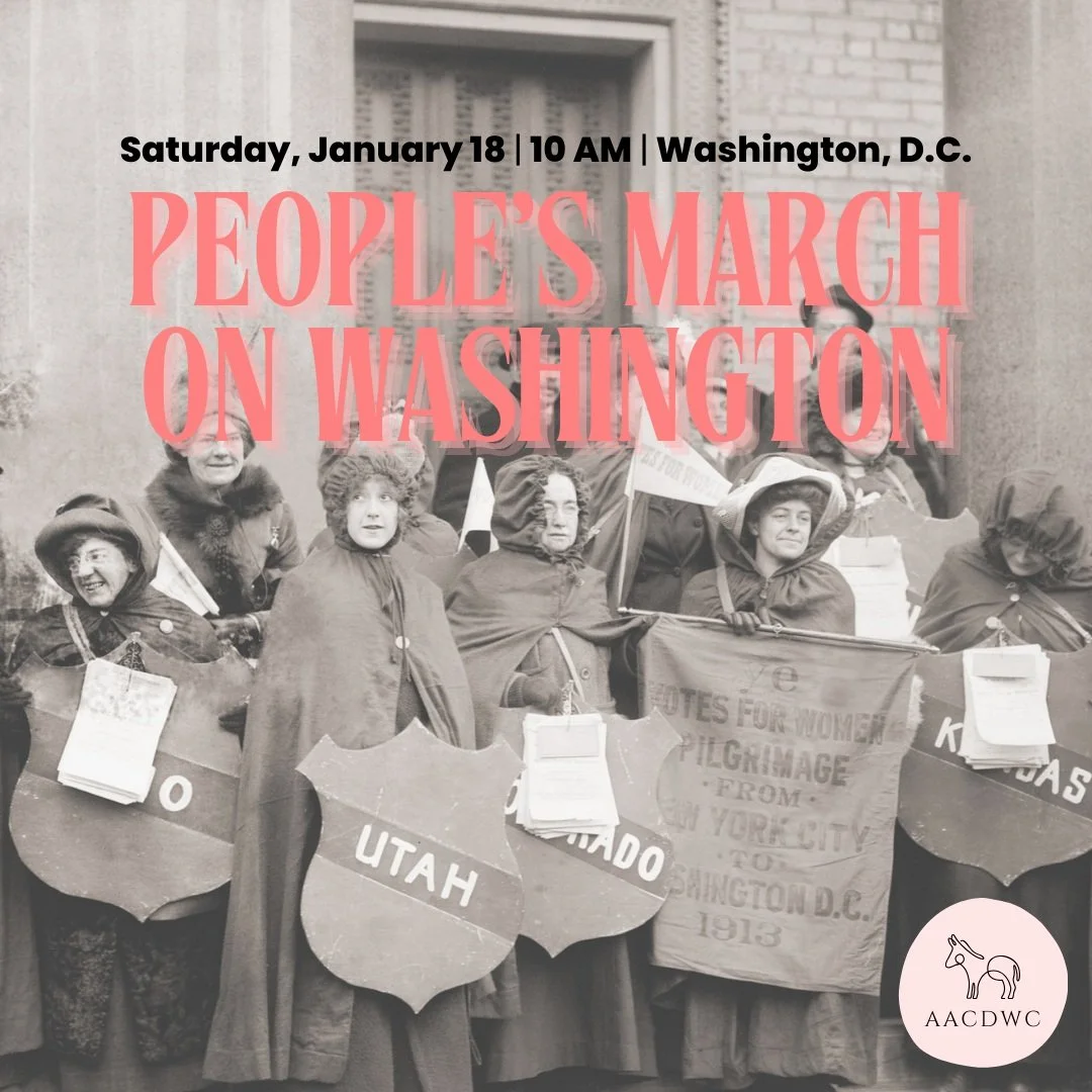 Washington D.C.Join the Anne Arundel County Democratic Women’s Club for the People’s March on Washington next year! We will be organizing a bus (which is not mandatory in order to join!) to join an estimated over 50,000 people, calling to protect our democracy and rights.